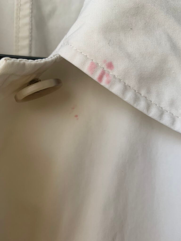 コートの襟に口紅⁉