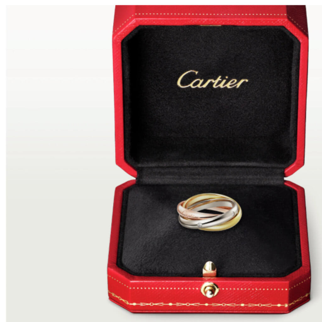 最近急に惹かれるようになったのが、カルティエのトリニティリング(ダイヤ5石)