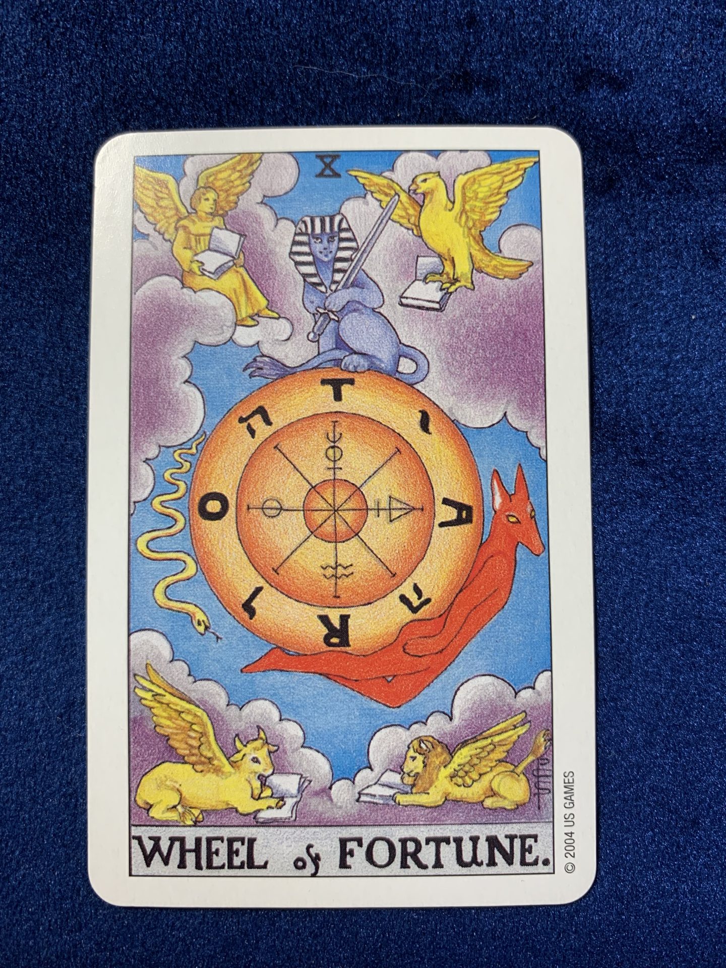ウェイト版の「運命の輪」に描かれている翼のある4つの動物(四大元素の象徴)