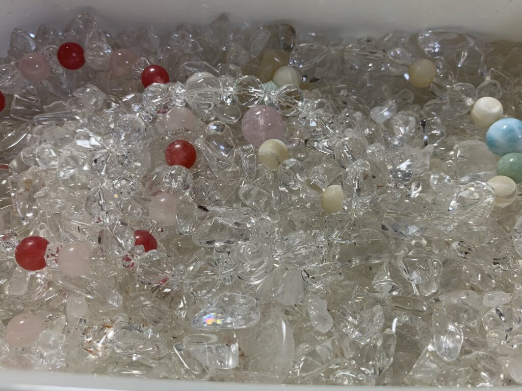 ブレスレットは、ふだん水晶のさざれ石に休ませています。
